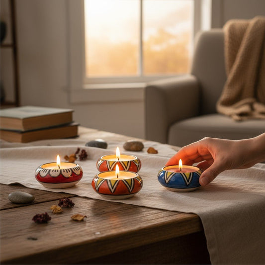 Handcrafted Small Red Ceramic Planter Self-Design Check Pattern