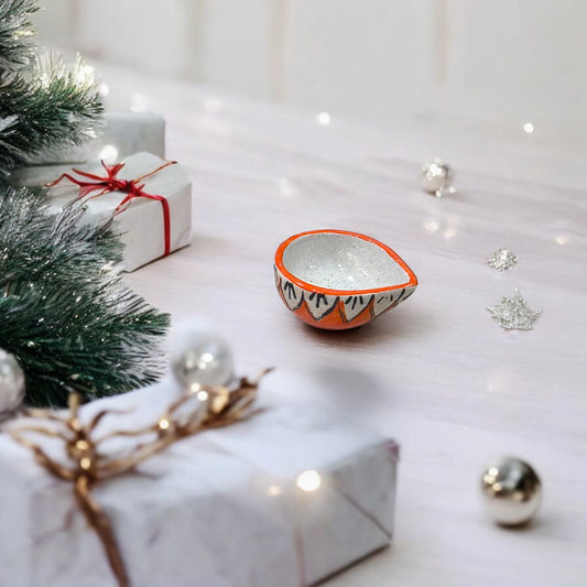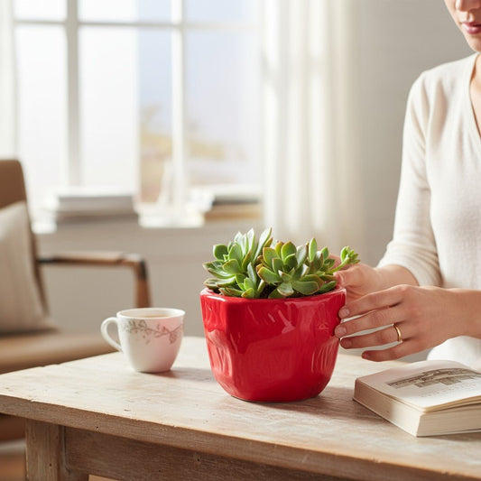 Handcrafted Small Red Ceramic Planter Self-Design Check Pattern